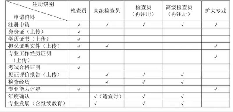 2.9.2 各级别注册申请人需要在网上申报系统填写或上传相关的证明资料见表二。